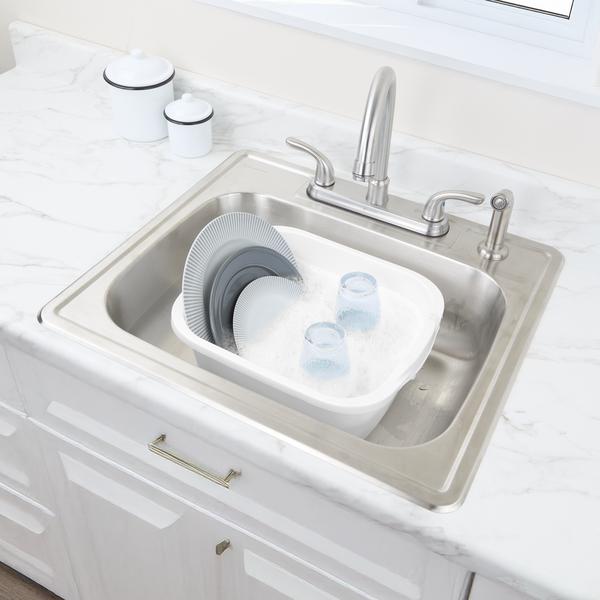 - Fits in most standard or twin sized sinks